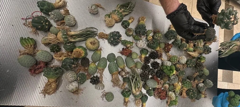 Кактусы и декоративные растения удалось выявить с помощью рентген-машины в ходе выборочного контроля. Всего в двух чемоданах находилось 212 ростков. Нарушительницы пояснили, что товар приобрели для высадки на даче и в качестве подарков для близких, а о порядке ввоза растений они не знали.