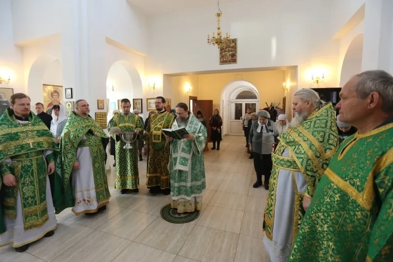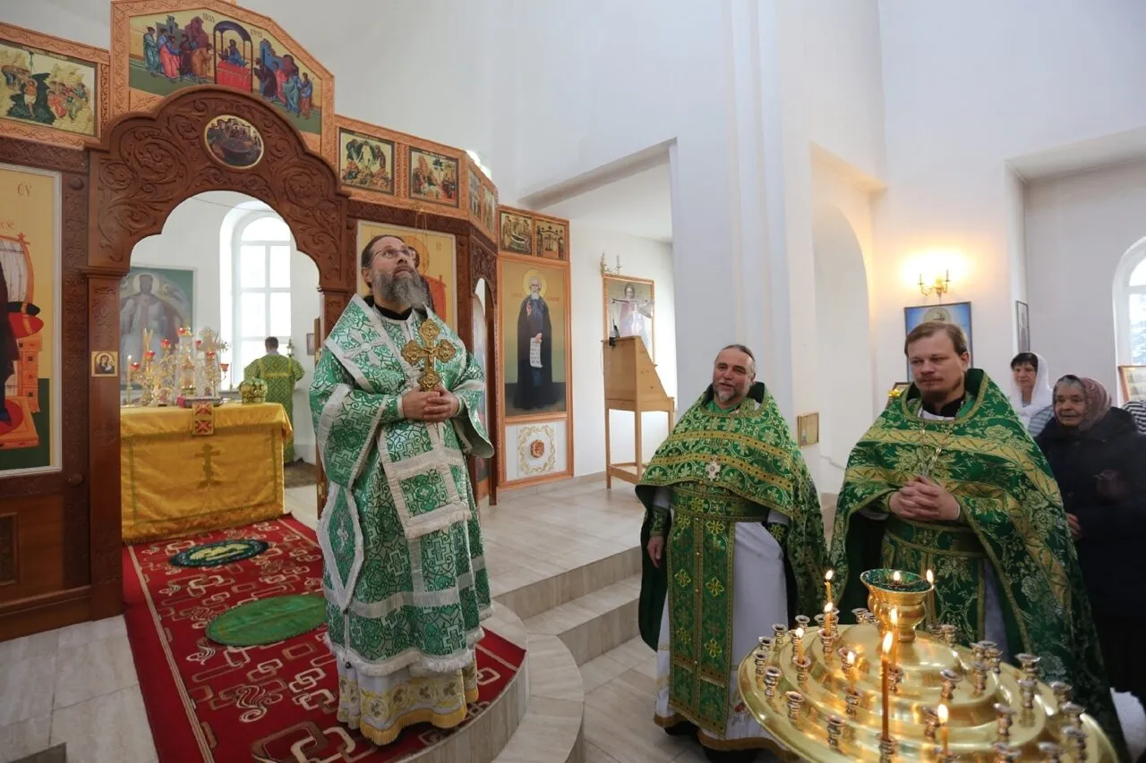 За литургией Его Преосвященству сослужили: благочинный Северного епархиального округа — протоиерей Игорь Затолокин, настоятель прихода — иерей Владимир Алехин, и настоятель храма во имя преподобного Серафима Саровского города Тогучина — иерей Алексей Мангушев.