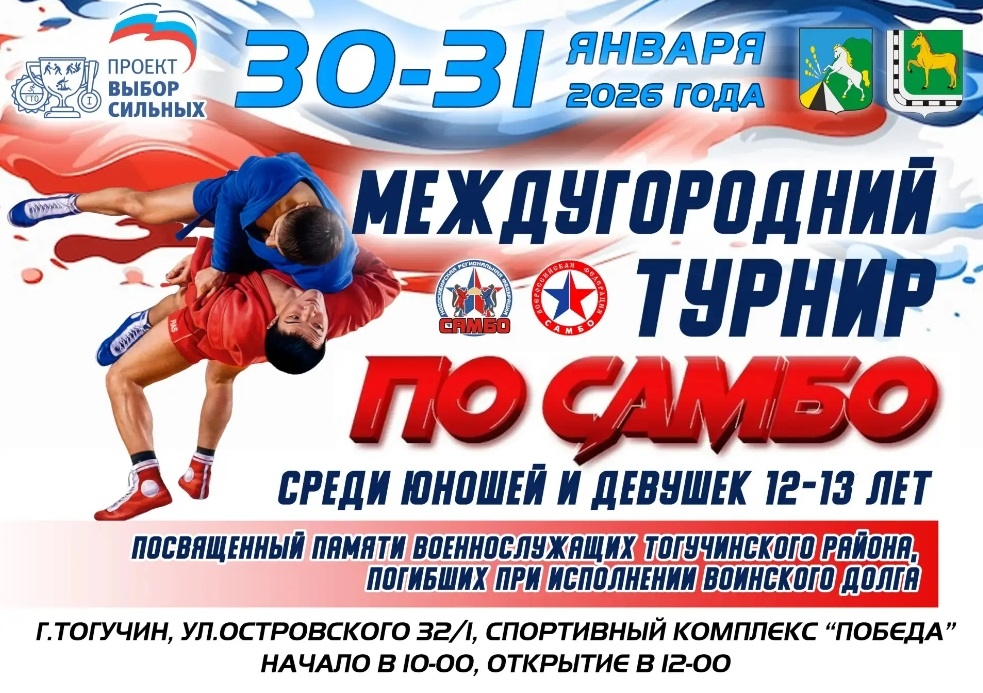30-31 января 2026 года в Тогучинском районе Новосибирской области состоится знаковое спортивное событие — IV Междугородний открытый турнир по самбо. Он традиционно посвящен памяти военнослужащих Тогучинского района, погибших при исполнении воинского долга.