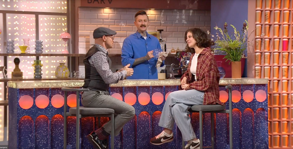 Девушка рассказала о том, с чего начинается ее утро, как она пришла в профессию, поступив в Театральную школу имени Олега Табакова и как посчастливилось пообщаться с великим человеком. Кроме этого, Ангелина поделилась опытом съемок в сериале «На льду», в котором у нее главная роль. «Мам, пап! Я на Первом канале», — передала привет своей семье Ангелина.