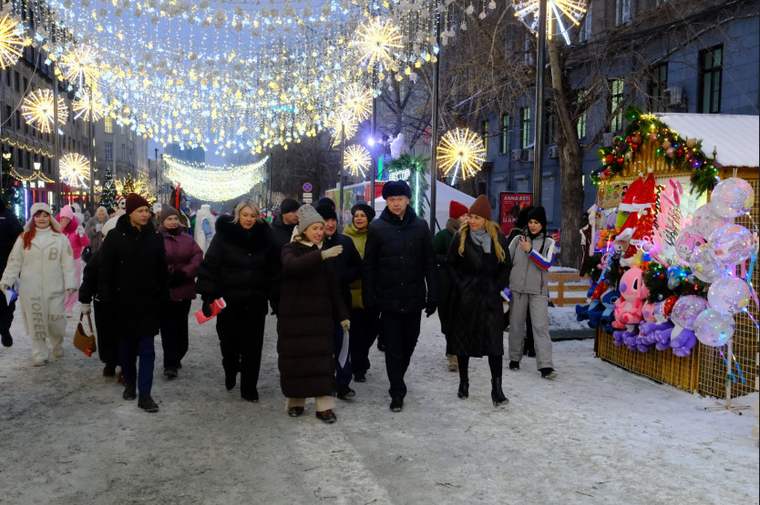 Глава региона ознакомился с оформлением новогодних пространств в центре Новосибирска – на территории Первомайского и Театрального скверов, на улице Ленина.