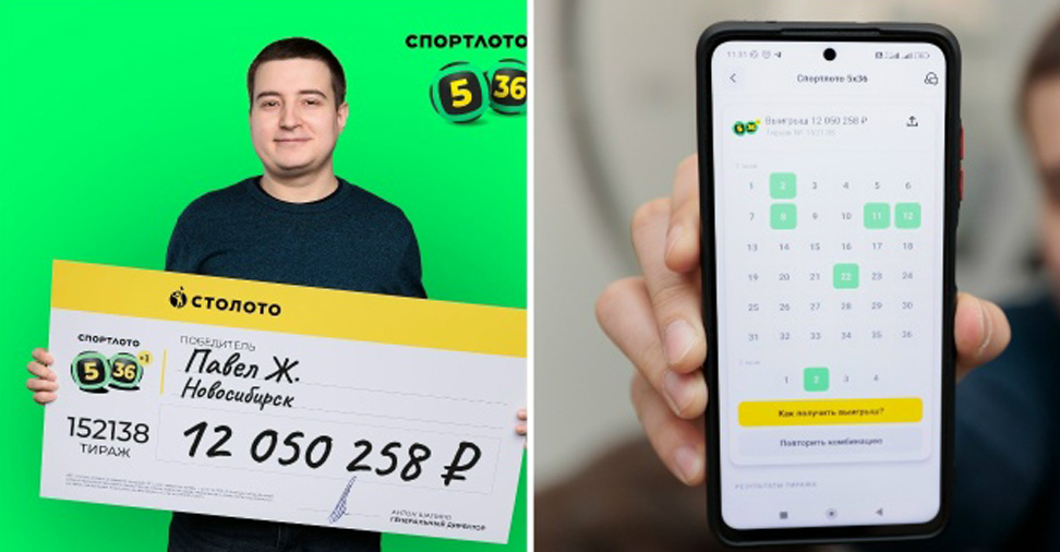 Павел Ж. из Новосибирска купил лотерейный билет в приложении «Столото» по пути на работу и случайно выбрал комбинацию чисел вместо привычных «счастливых». О выигрыше в «Спортлото «5 из 36″» Павел узнал на работе, получив СМС-уведомление о выигрыше в размере 12 050 258 рублей.