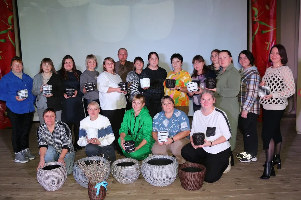 На предложение заведующей методическим кабинетом Тогучинского КДЦ Ирины Ирековны Портных принять участие в мастер-классе по плетению из искусственного ротанга откликнулись почти 20 сотрудников сельских учреждений культуры.