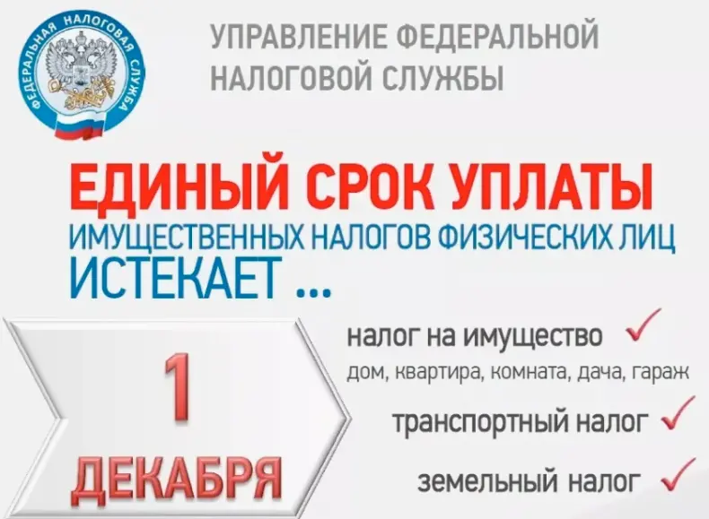 - Уплатить имущественные налоги необходимо не позднее 1 декабря 2025 года