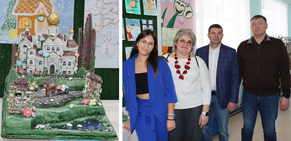 В Центре творчества Ольгу приветствовали Глава Тогучинского района Сергей Пыхтин, глава города Тогучина Сергей Борутенко, педагоги и обучающиеся детских объединений. «Эта чудесная работа останется в Центре развития творчества, пусть дети смотрят на такую красоту. Ольга, благодарим Вас и Вашего преподавателя, директора колледжа Дарью Сергеевну Федосееву за такой подарок. Ольга, получайте диплом и приезжайте в наш родной район на работу! Будем Вас ждать. Творческих успехов Вам», — отметил Сергей Пыхтин.