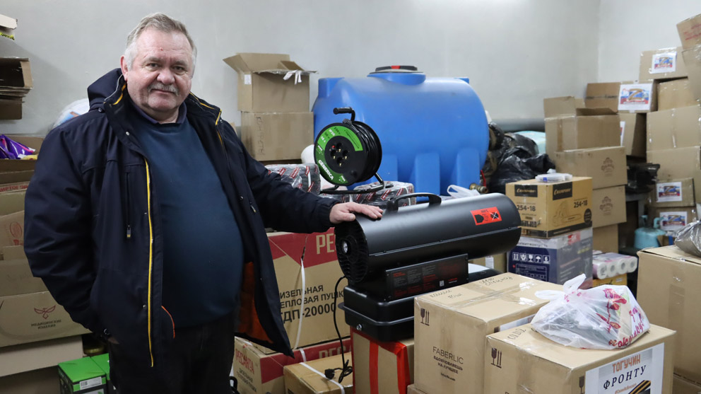 На этот раз выполнена заявка воинской части, в которой служит односельчанин. В составе: три планшета, два инвекторных генератора, компрессоры, четыре тепловые пушки и столько же бухт кабеля связи, набор инструментов, три удлинителя, рулоны изоспана и пленки, кондитерские изделия, кофе.