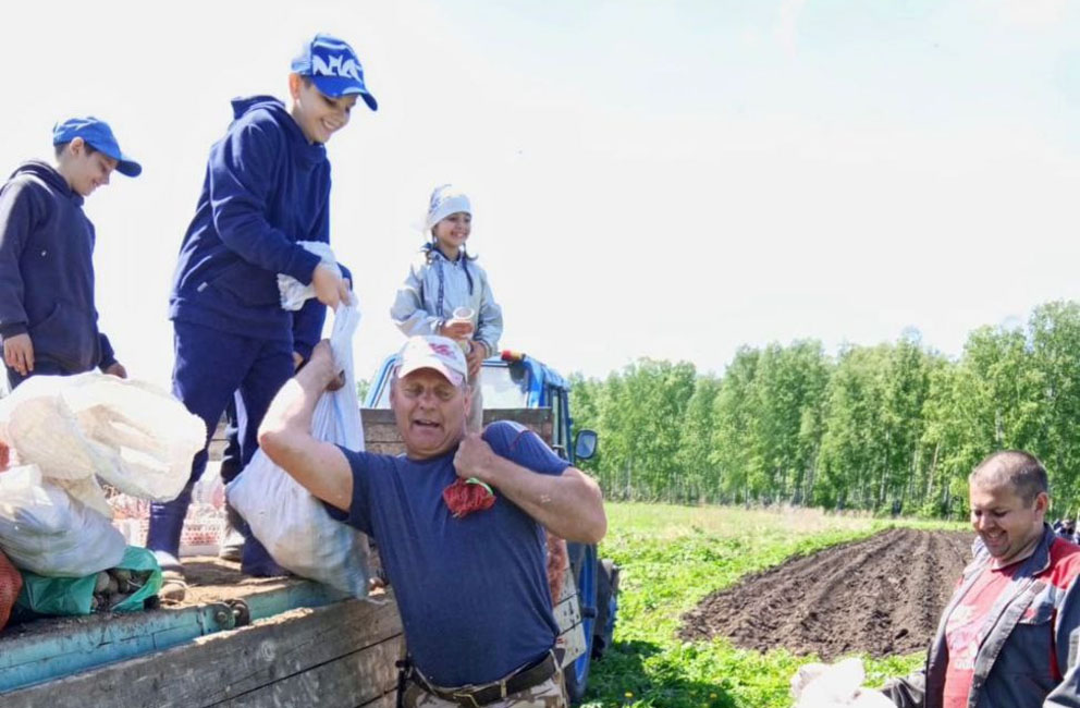 Воскресенье. 25 мая. На поле за поселком Нечаевский много техники: трактор с телегой, самодельный мотоблок с маленькой тележкой, мотоциклы, автомобили. Кто побоялся проехать на низкой машине, пересел к тем, кто приехал на внедорожниках. Люди с ведрами, перчатками и с хорошим настроением. Кто-то знает друг друга, кто-то нет. Но это не чувствовалось. Все приехали на одно благое дело – посадить картошку, урожай которой пригодится для изготовления сухого супа, борща, рассольника и прочих первых блюд для участников специальной военной операции. Картошка в ведра насыпана, и каждый выбрал по рядочку. «У меня закончилась, можете поднести?», «Так, ребятки, не забываем притаптывать», «Я иду к вам навстречу, докидаю полосу», «Мужики, еще мешки возьмите», «Глаза боятся, руки делают» — вот такие отголоски слышались с поля.