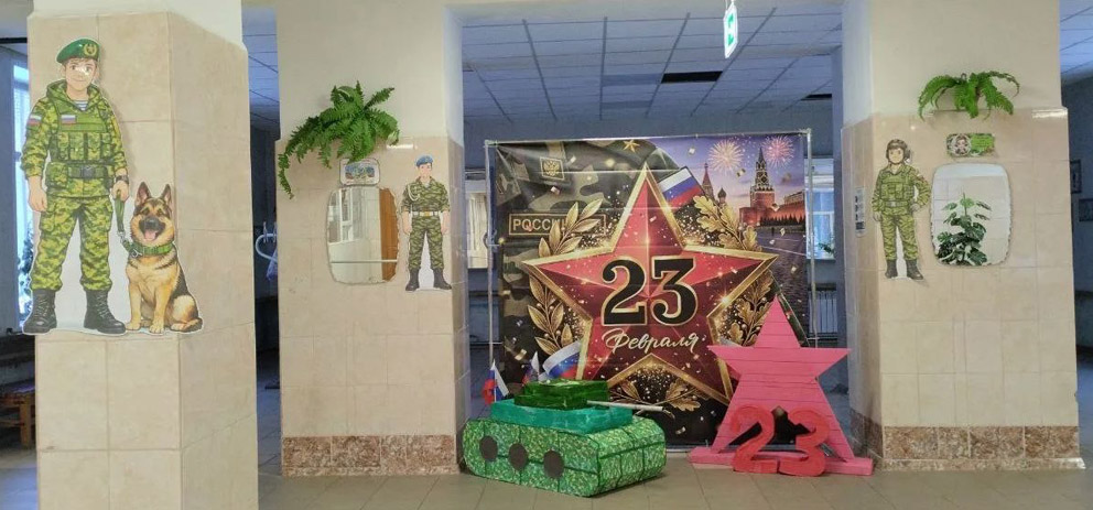 В преддверии Дня защитника Отечества в Тогучинском политехническом колледже за проект оформления фотозоны взялись родители одной из студенток — люди с золотыми руками и богатым воображением.
