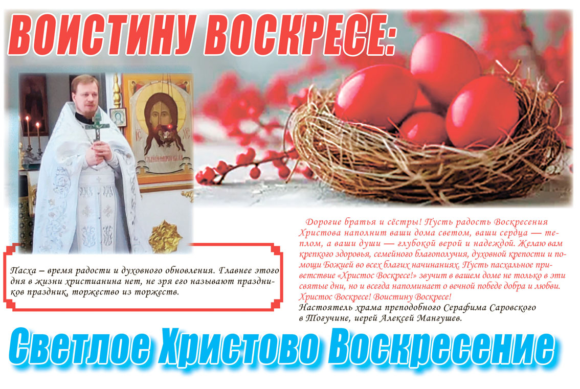 Актуально С праздником Светлой Пасхи! Редакция Опубликовано: 12.04.2026 Кратко православие Встречаем Пасху В Чистый четверг обязательно проводить уборку дома? В Тогучине начали продавать вербу к празднику Пасха‑2026: когда отмечать и как подготовиться? После Крещения встречаем Масленицу: когда она наступит в 2026 году?
