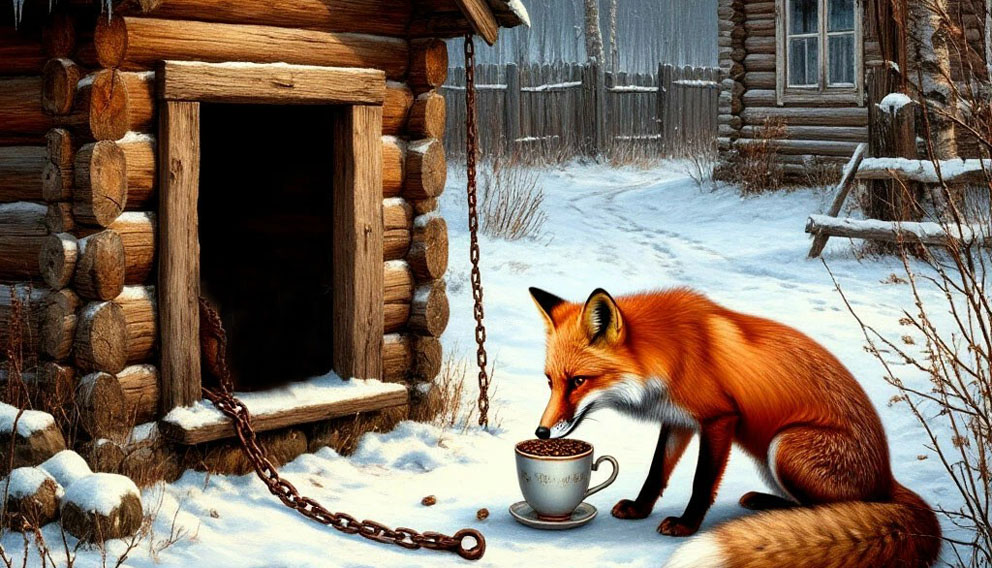 В селе Янченково дикое животное пришло из леса и попыталось съесть собачью еду.