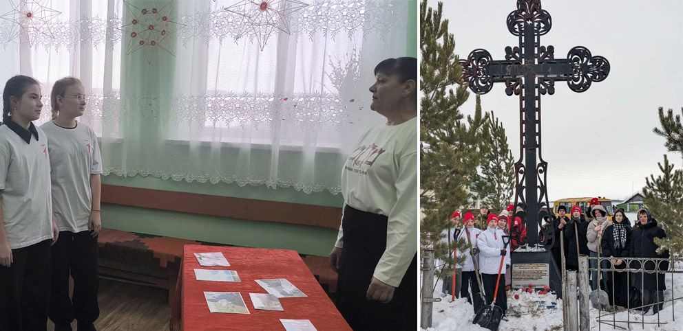 Ребята не ограничились изучением прошлого, позаботившись о сохранности памятного места, расчистили территорию Поклонного Креста от снега