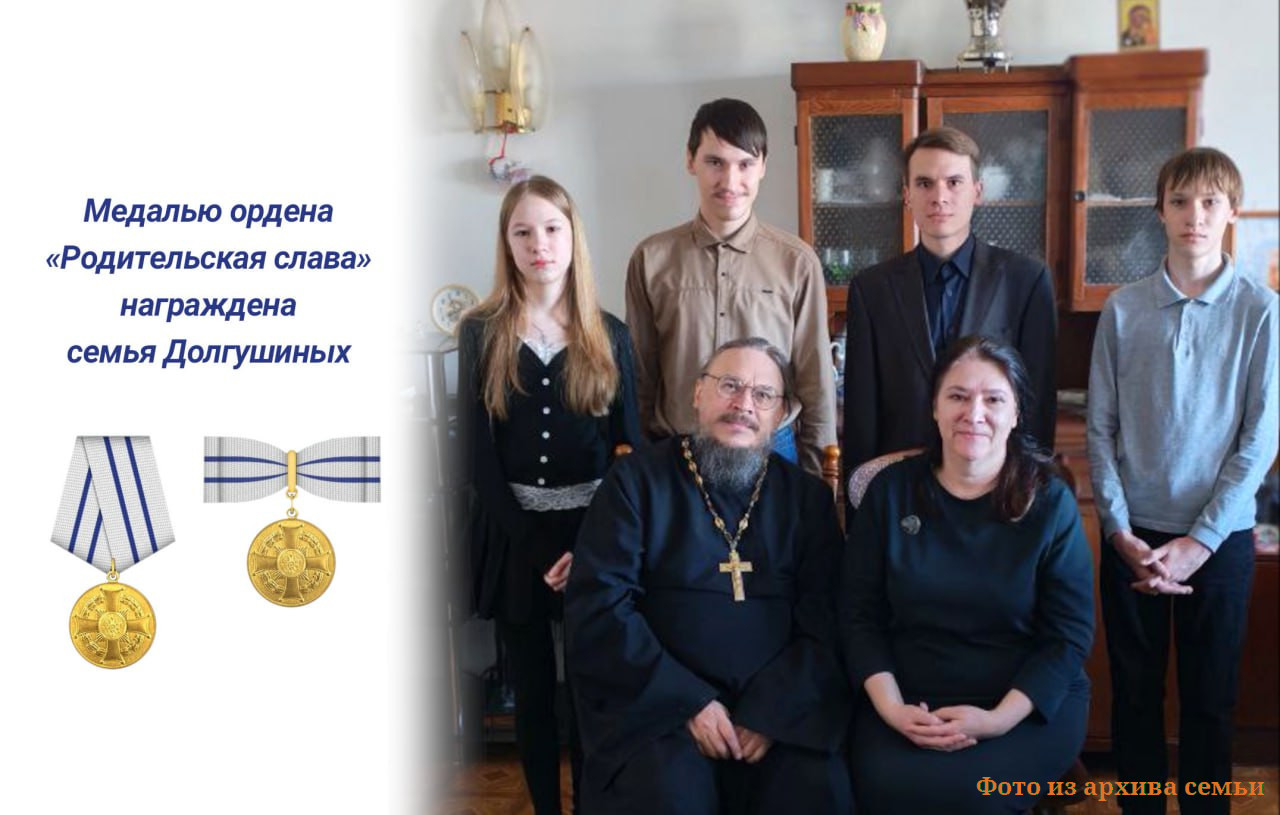 Семья Долгушиных удостоена медали ордена «Родительская слава». Дмитрий Владимирович и Людмила Васильевна – пример семьи ученых-просветителей. Глава семьи – доктор филологических наук, преподаватель НГУ и священнослужитель. Его супруга – кандидат филологических наук, также преподает в НГУ. Шестеро детей Долгушиных воспитываются в духе высокой гражданской ответственности и глубокого уважения к духовным и культурным традициям России.