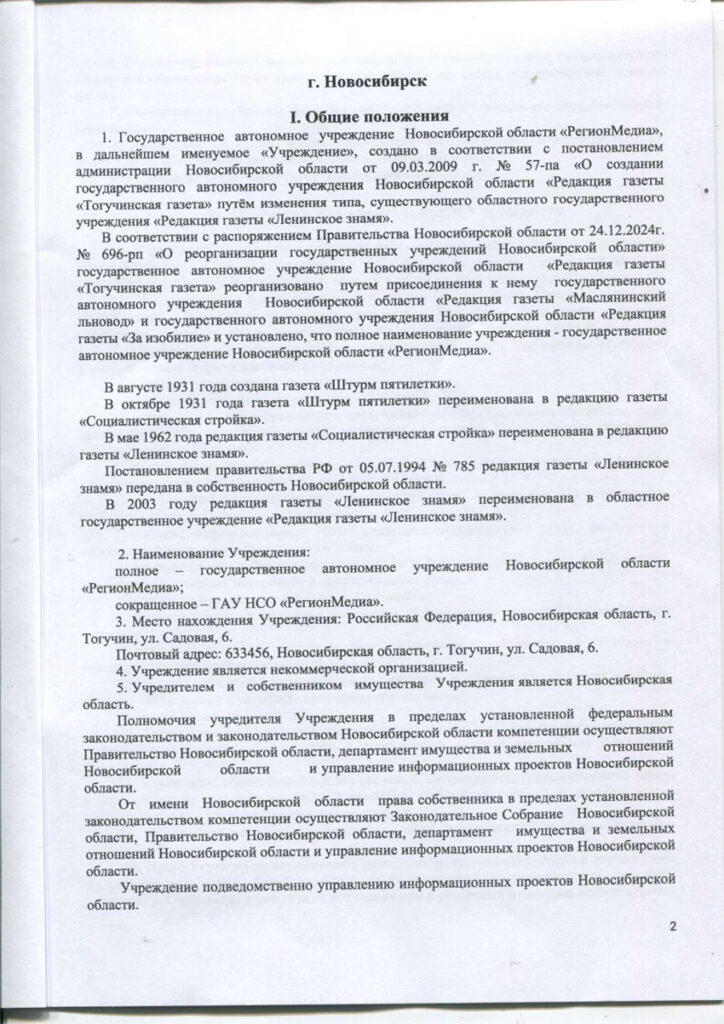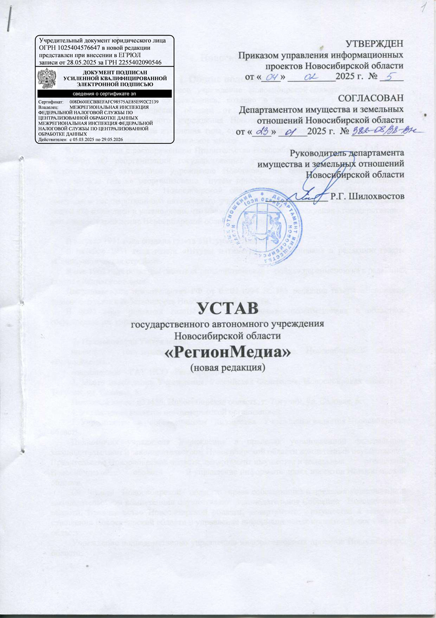 Устав ГАУ НСО «РегионМедиа»